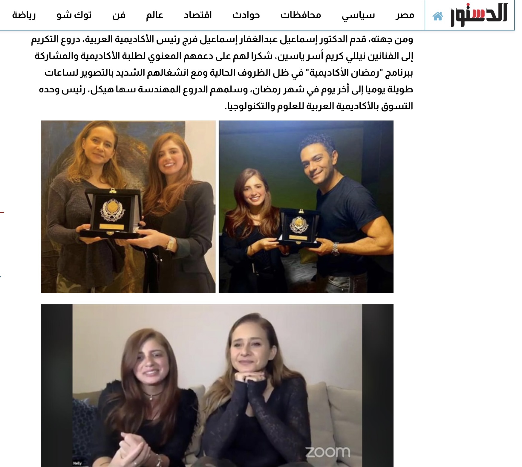 Dostor Newspaper: “Ramadan at the Academy” an Initiative Hosting Ramadan Movie Stars at AAST with Soha Heikal